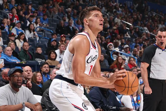 博格達諾維奇在上賽季中段的一筆交易中被亞特蘭大老鷹送到了快船。在加盟快船之后,博格達諾維奇在上賽季的NBA常規(guī)賽中總共出場30次,場均出場時間達到了25分鐘,場均數據為11.4分3.1籃板3.2助攻0.7搶斷0.2蓋帽,還有1.2次失誤和2.3次犯規(guī),投籃命中率47.4%,三分命中率42.7%,罰球命中率87.5%。到了季后賽,博格達諾維奇總共出場7次,場均出場時間達到了16.7分鐘,場均數據為6.4分2.9籃板2.1助攻0.4搶斷,還有1.6次失誤和3.6次犯規(guī),投籃命中率36.4%,三分命中率29.2%,罰球命中率85.7%。本賽季開季至今,博格達諾維奇受到傷病和戰(zhàn)術安排方面的影響在前27場比賽中總共出場13次,場均數據達到了24.7分鐘,場均數據為9.5分3.2籃板2.9助攻0.6搶斷0.1蓋帽,還有1.2次失誤和2.7次犯規(guī),投籃命中率40.4%,三分命中率35.9%,罰球命中率84.2%。